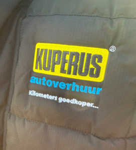 Mooie kleding geleverd voor autoverhuurbedrijf Kuperus, met geborduurde logo’s op de borst en beide mouwen. - Werkvilla Apeldoorn