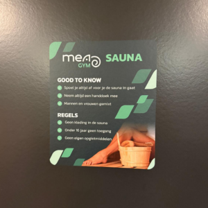 We hebben diverse stickers gemaakt voor Mea Gym in Laren, alles netjes strak in de huisstijl! - Etiq Tandartsen